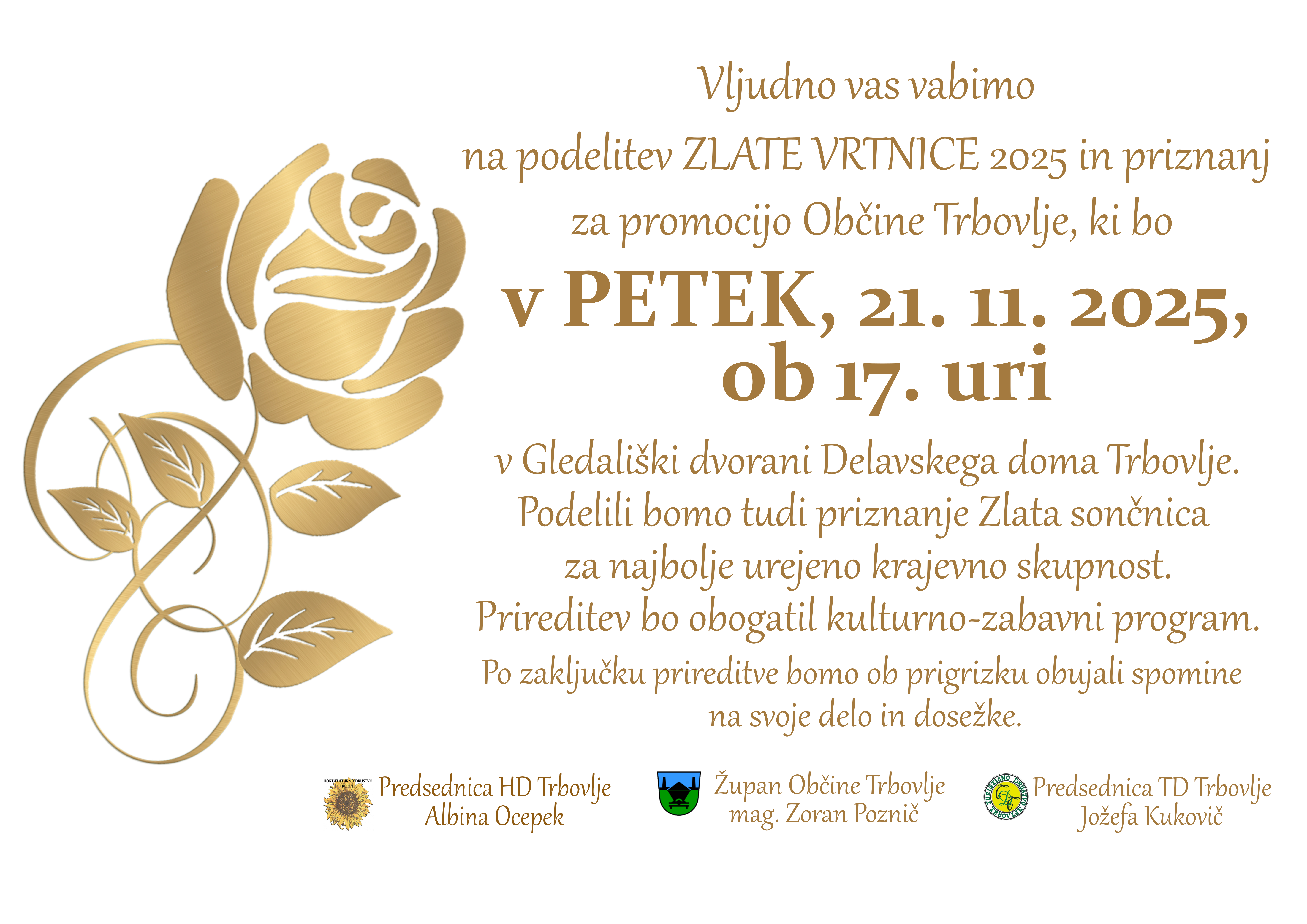 Vljudno vabljeni na prireditev Podelitev Zlate vrtnice in priznanj 2025.