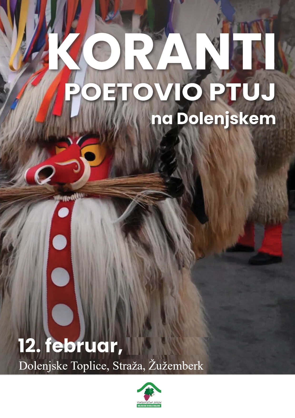 Na podlagi dolgoletnega prijateljskega sodelovanja TZ Dolenjske in Bele krajine z Društvom Koranti Poetovia Ptuj, bodo v četrtek, 12. februarja 2026, na Dolenjskem gostovali in preganjali zimo kurenti.