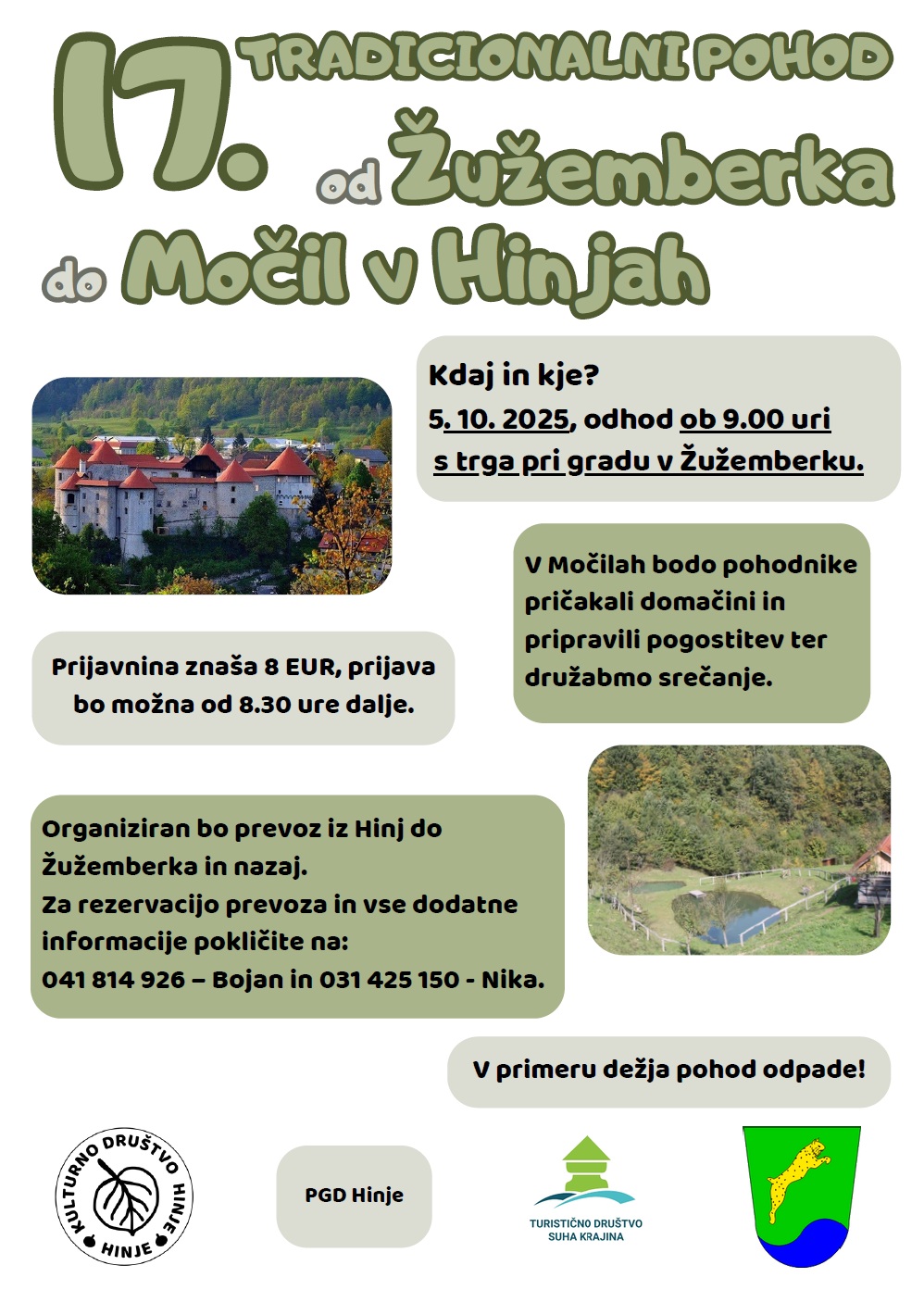 5. 10., ob 09:00, 16. Pohod po Suhi krajini od Žužemberka do Močil.