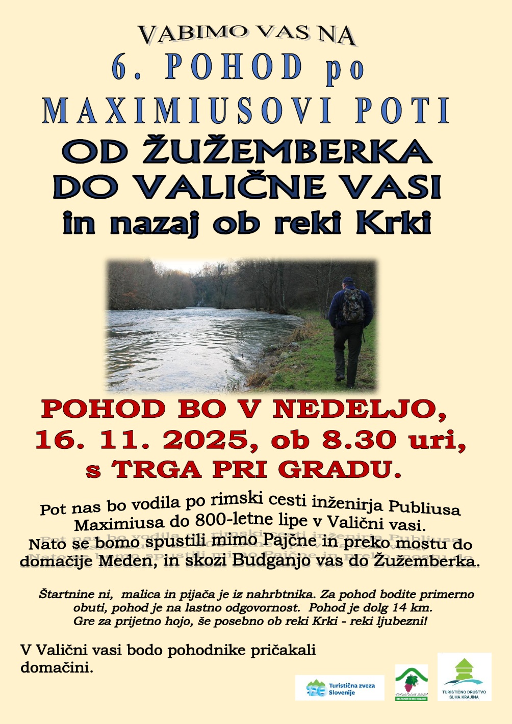 16. 11., ob 08:30, 6. Maximiusov pohod od Žužemberka do Valične vasi in nazaj.