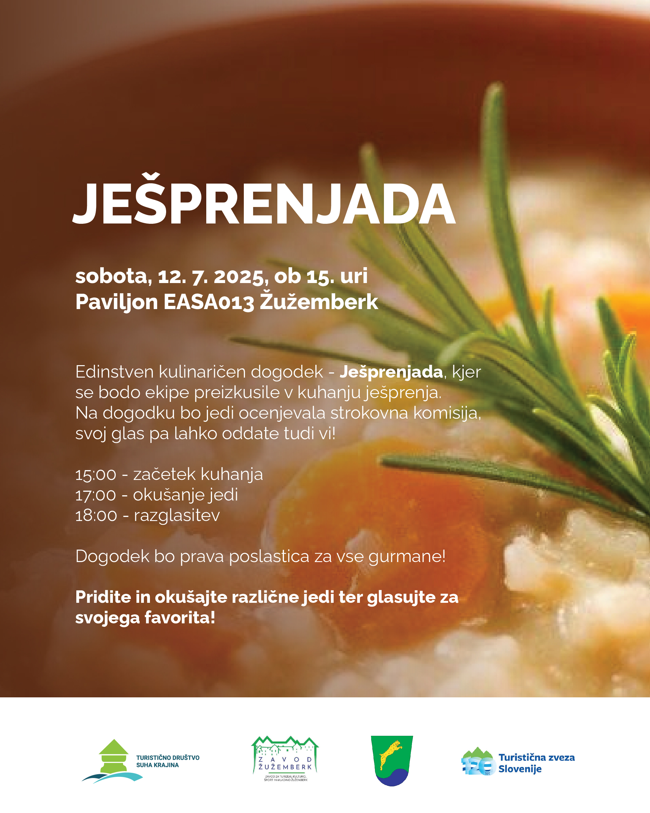 Vabimo vas na edinstven kulinarični dogodek – »Ješprejada 2025«, ki bo potekal v soboto, 12. julija 2025 v Žužemebrku, v metropoli Suhe krajine!