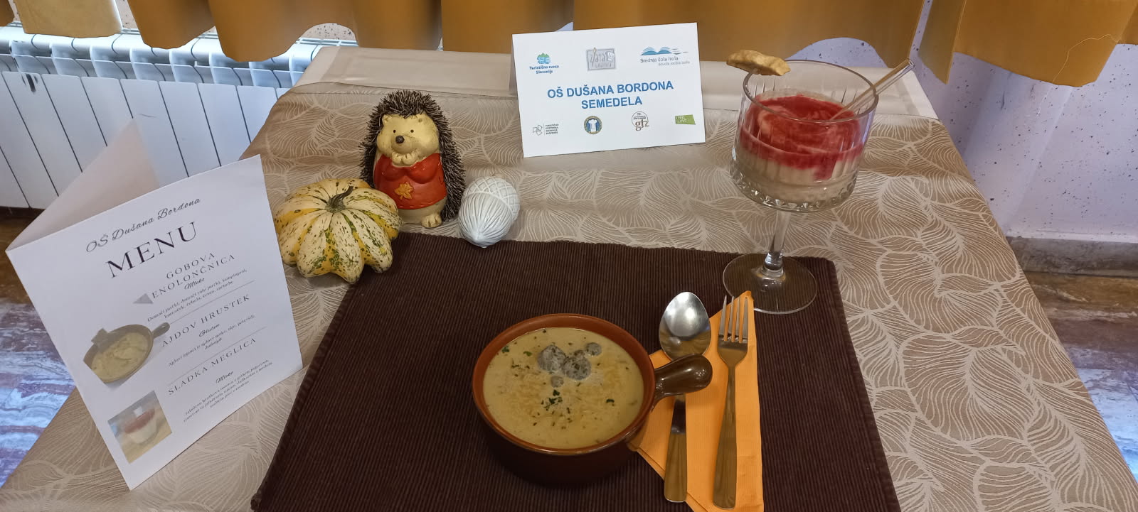 Letos so osnovnošolci pripravljali pravi jesenski meni: ajdove žgance, gobovo enolončnico ter osvežilni jabolčno-hruškov smoothie. Tekmovalke in tekmovalci so poskrbeli tudi za čudovite jesenske pogrinjke.