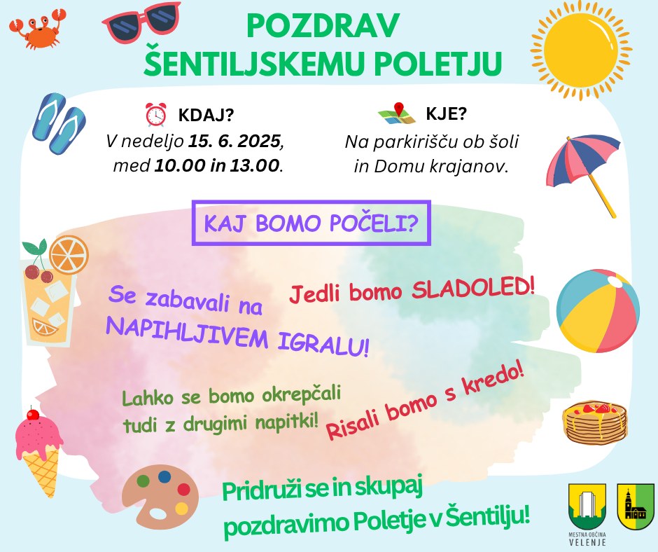 Že tretje leto Krajevna skupnost prireja pozdrav šentiljskemu poletju ob koncu šolskega leta. Takrat se zberemo društva in pomagamo KS pri prireditvi. Imamo razstave, igre za otroke in še veliko drugih zanimivih stvari in iger.