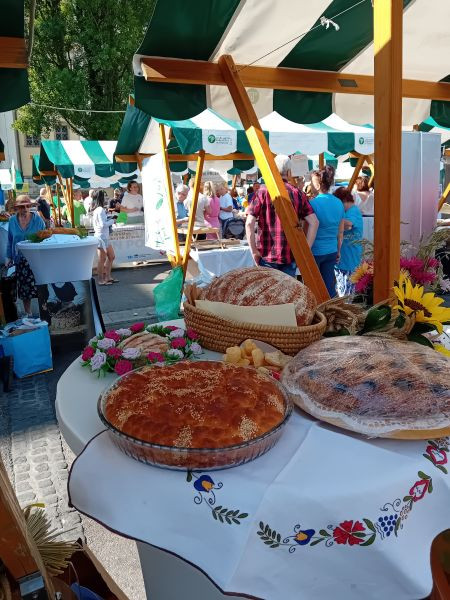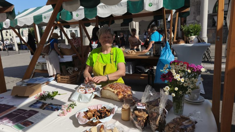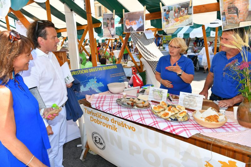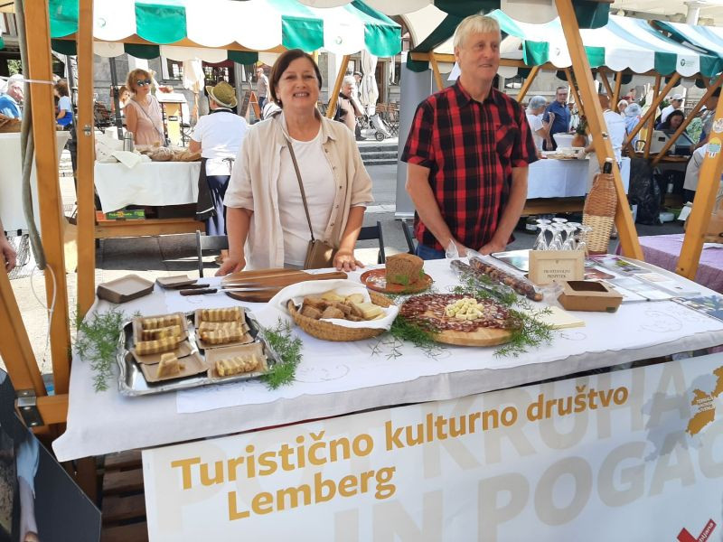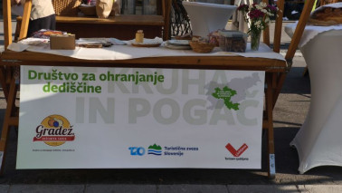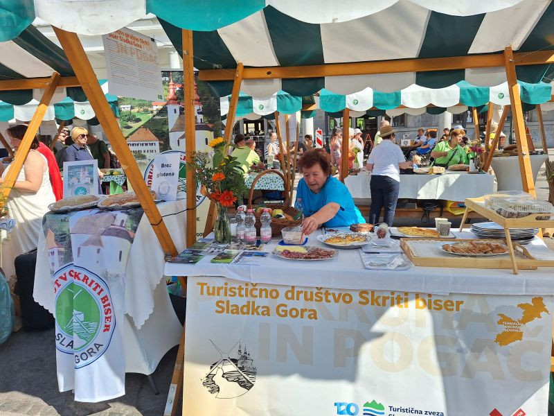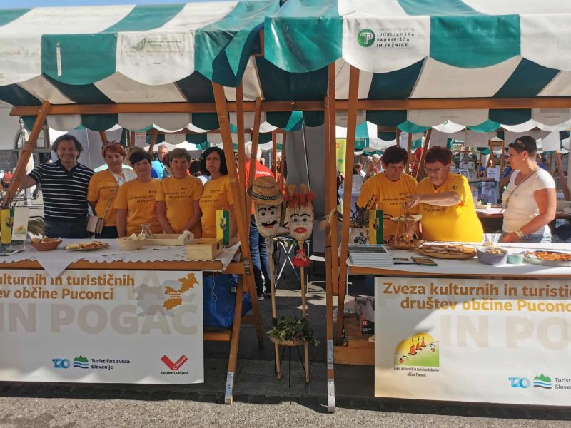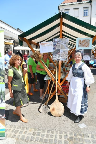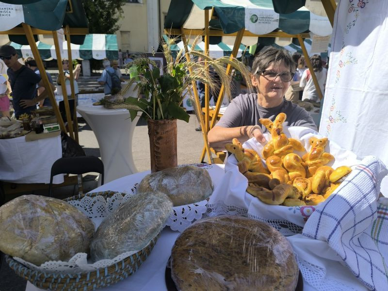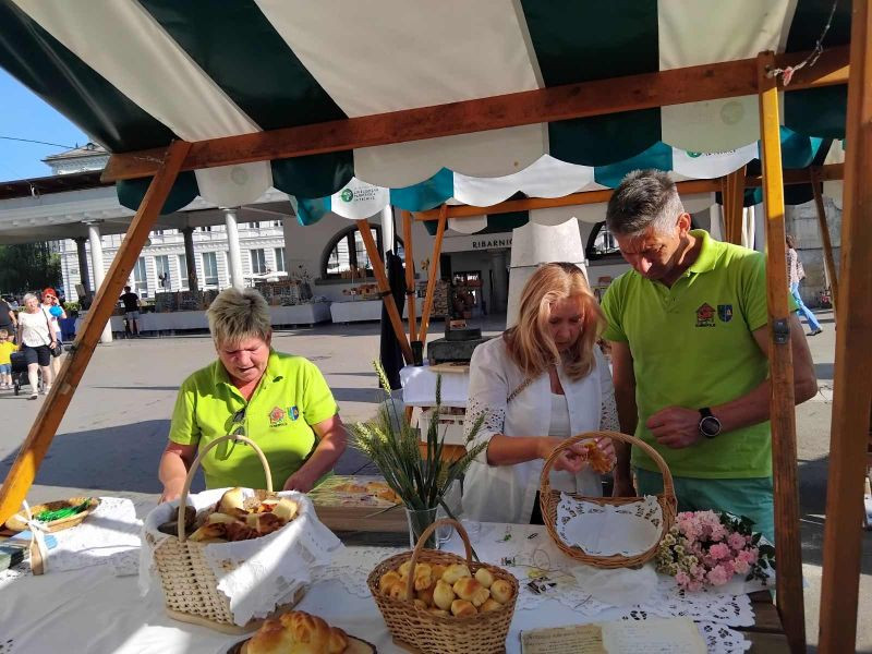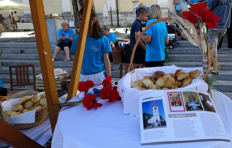 Turistična društva iz vse Slovenije so se na Pogačarjevem trgu predstavila z različnimi vrstami kruha in pogač.