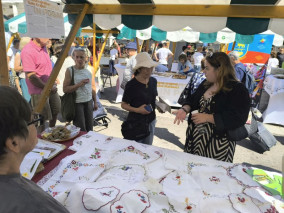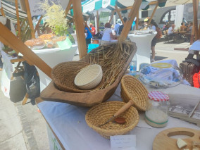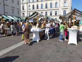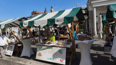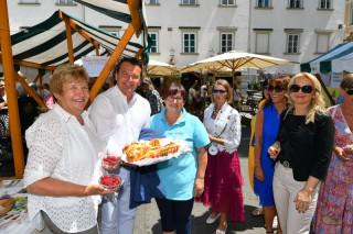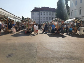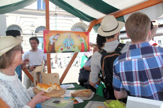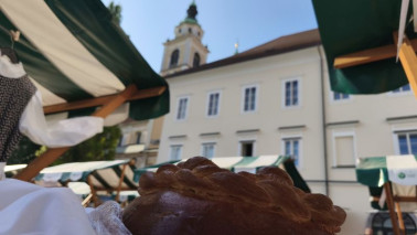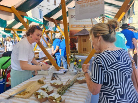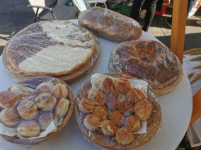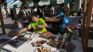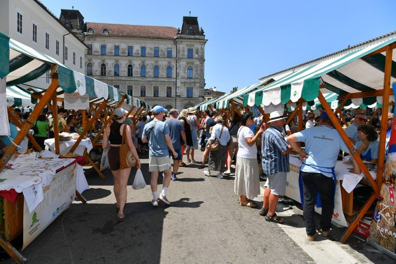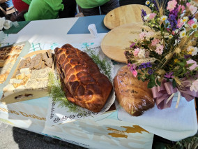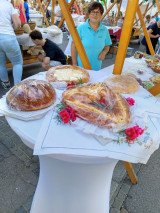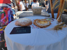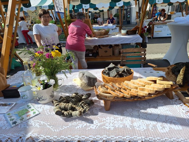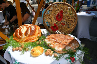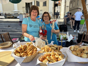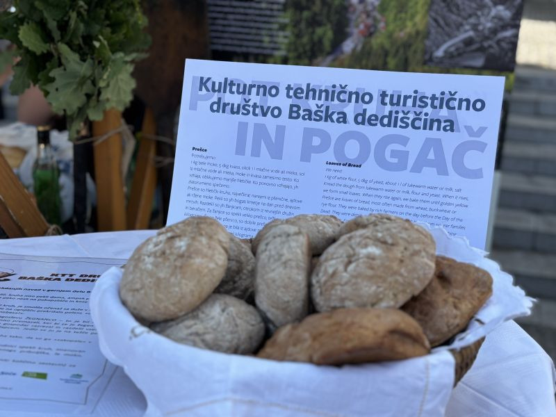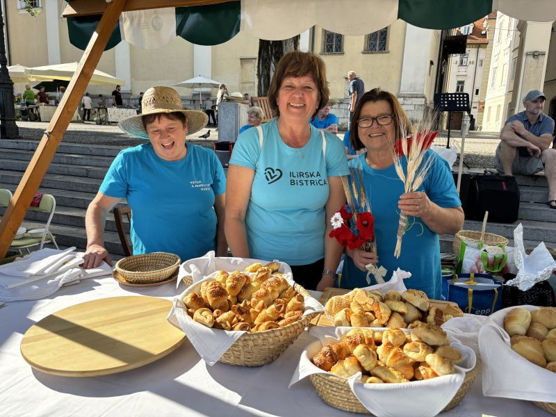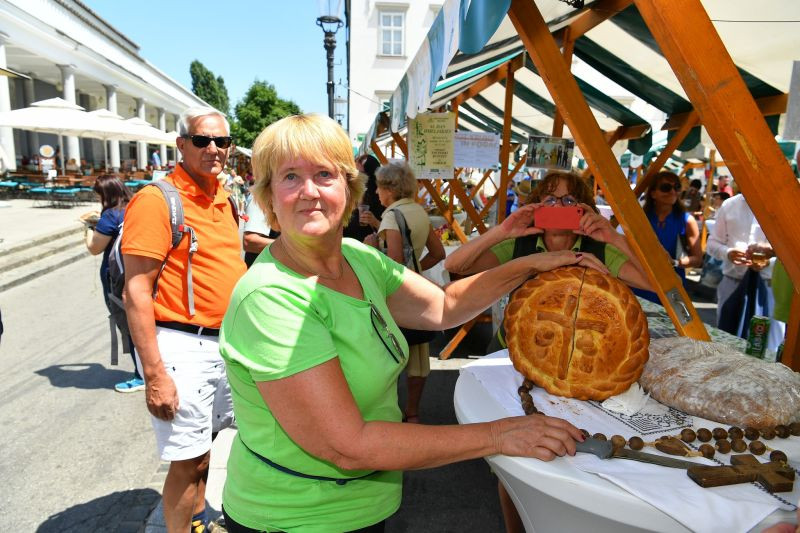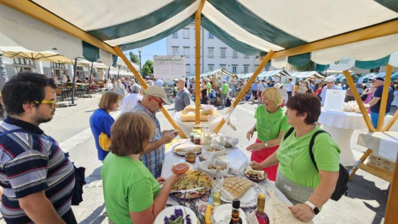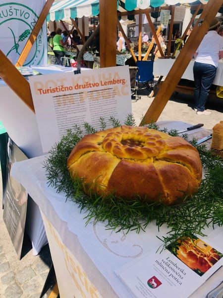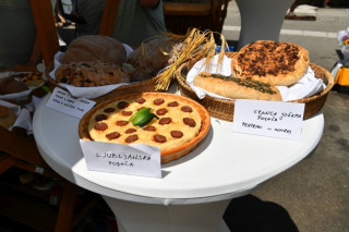 Turistična društva iz vse Slovenije so se na Pogačarjevem trgu predstavila z različnimi vrstami kruha in pogač.