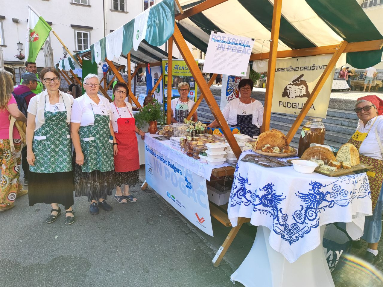 Turistična društva iz vse Slovenije so se na Pogačarjevem trgu predstavila z različnimi vrstami kruha in pogač. Na poti kruha in pogač so domači in tuji obiskovalci degustirali dobrote z različnih koncev Slovenije in tako na pristen način občutili slovensko gostoljubnost.